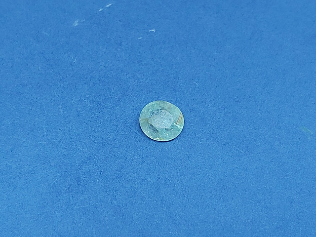 Topázio (var. Topázio azul). Gema bombardeada. Possui um dos cantos fraturados